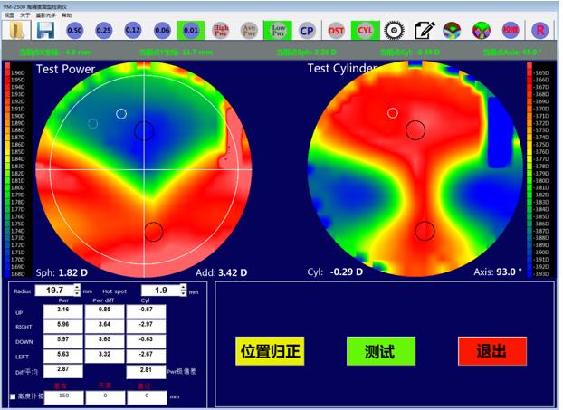 眼鏡片/眼鏡片玻璃模具的S值、C值、ADD值、軸位、非球度值均自動呈現(xiàn)。